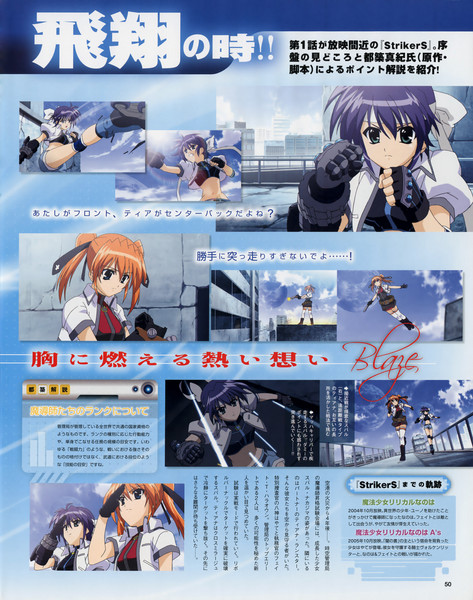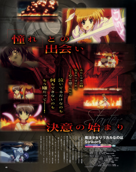 Die kämpfenden Lolis sind am 1.April zurück gekehrt. Jedoch sind aus den kleinen Girls nun richtige Frauen geworden. MSL Nanoha StrikerS setzt 10 Jahre nach den Geschehnissen von MSL Nanoha A’s ein und bietet neben den altbekannten Hauptcharakteren natürlich auch wieder Neues. Die 4 neuen Hauptcharaktere sind hierbei: Subaru, Teana, Erio und Caro.