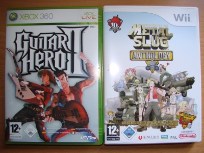 Game Nachschub muss von Zeit zu Zeit auch mal sein. Und so versorge ich dieses Mal meine XBox360 und meinen Wii mit Spielkost. Die Kost nennt sich dabei Guitar Hero 2 und Metal Slug Anthology.