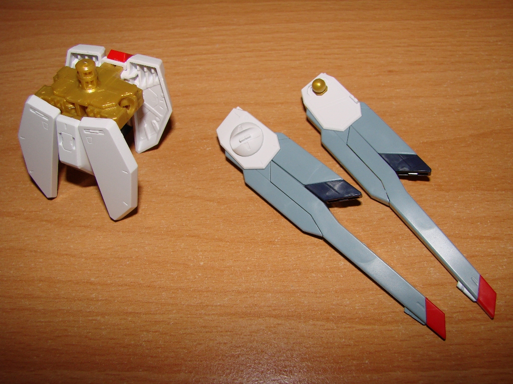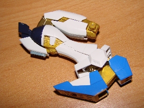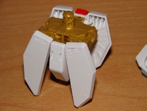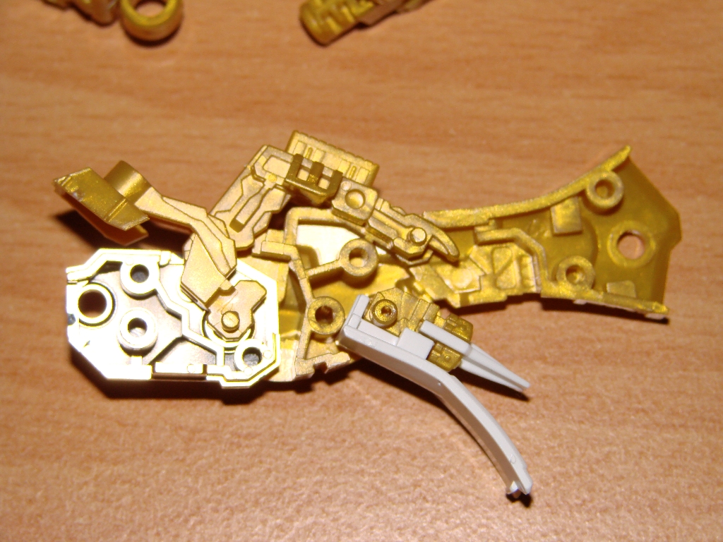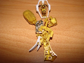 Die Beine sind aus normalen Teilen, was jedoch halb so wild ist, da diese nachher sowieso eine Hülle aus weißen Teilen bekommen und diese doch eher billig wirkenden Goldplastikteile verdecken.