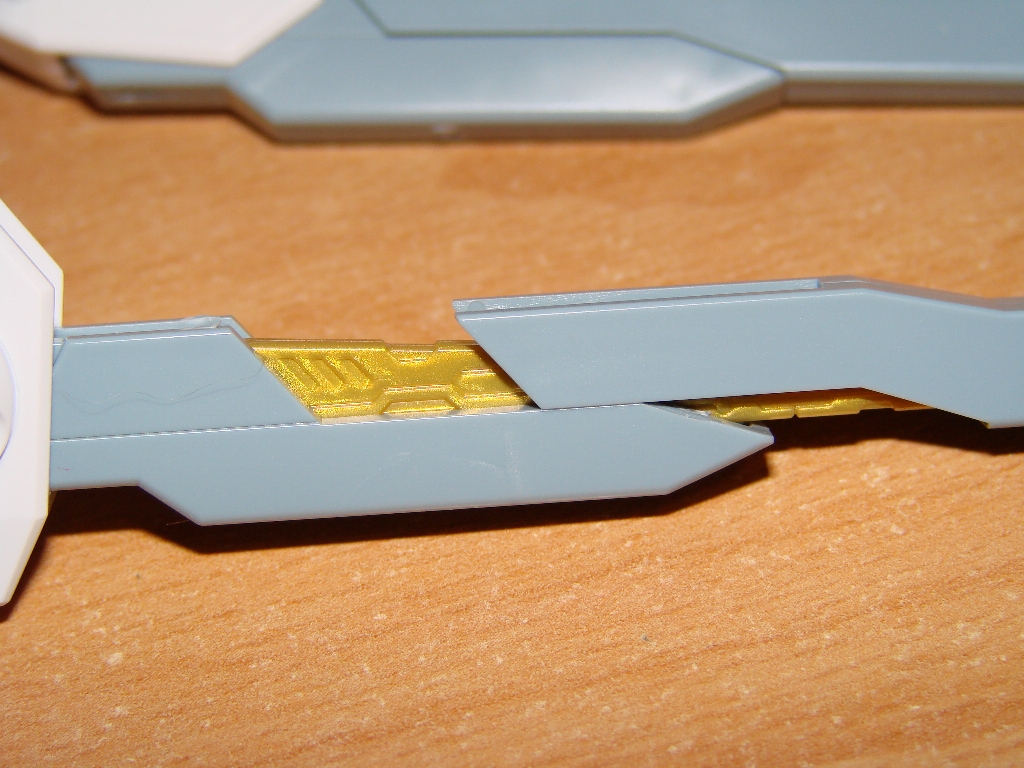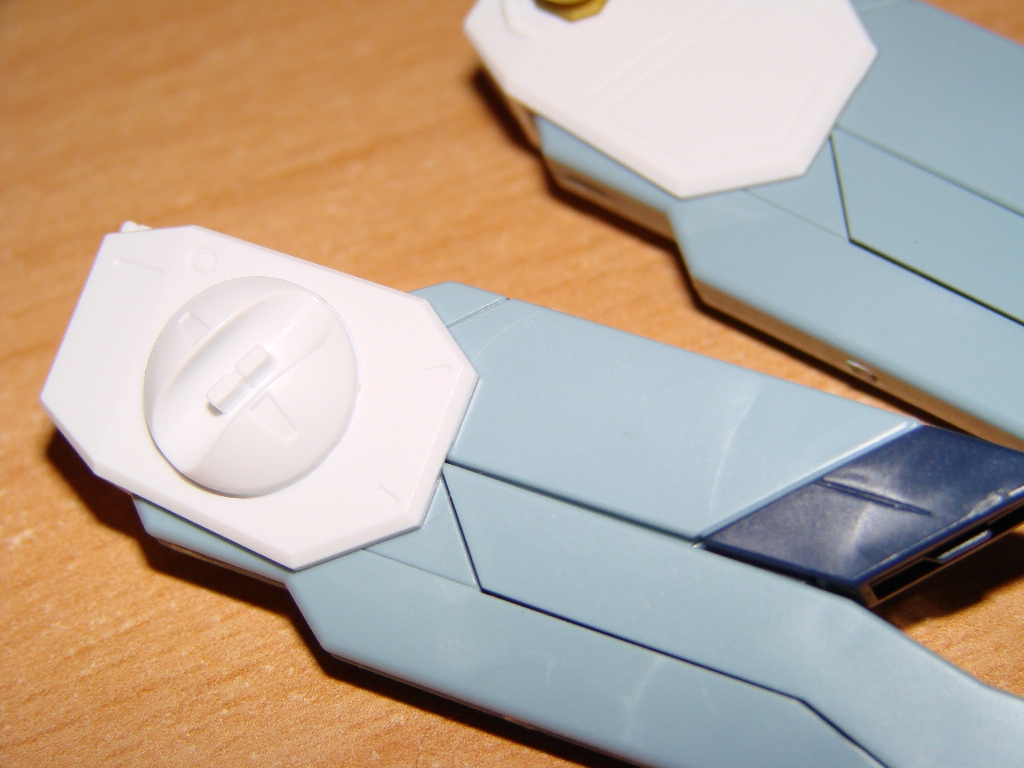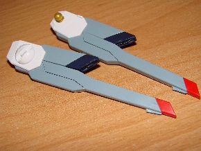 Hier seht ihr die “MMI-M15E “Xiphias 3″ Railgun” im zusammengeklappten Modus. Ebenfalls ist eine Befestigung für die beiden Beam Saber vorhanden.