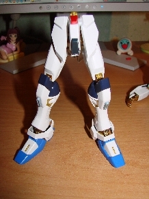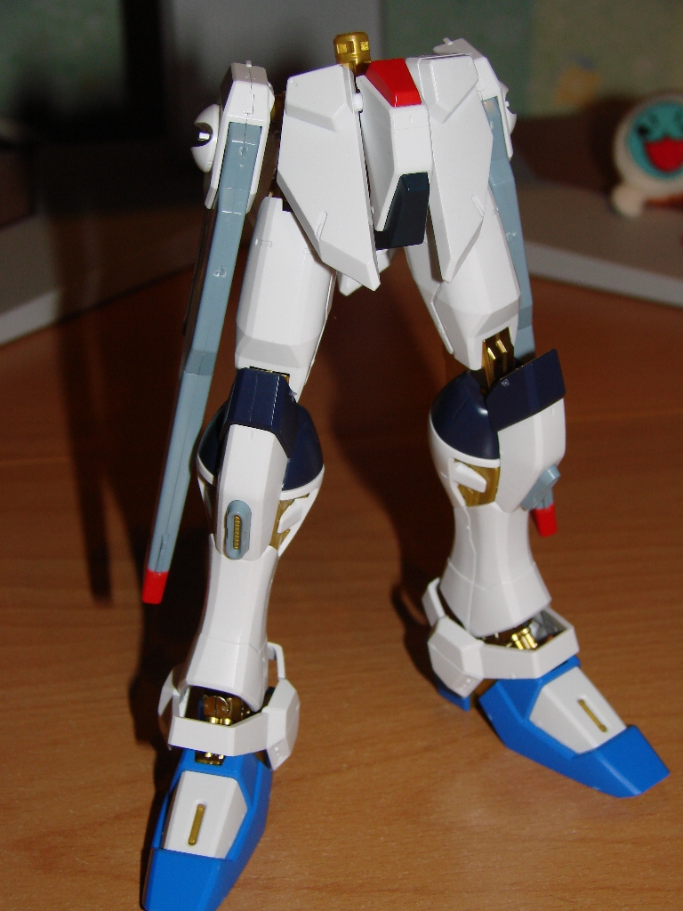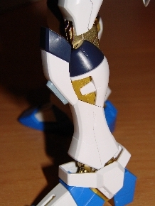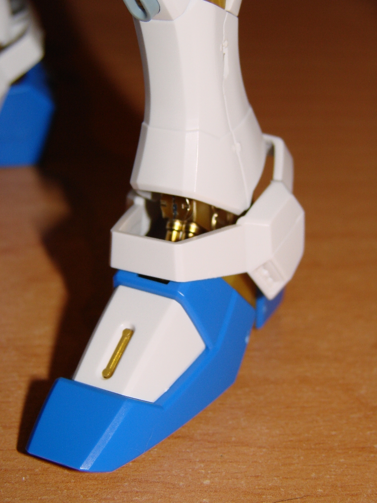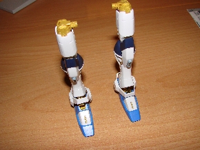 Hier seht ihr die Beine nun komplett verschalt mit weißen Teilen, auch die Füße sind nun fertiggestellt. Wunderbar ist vorallem die starke Bewegbarkeit der Leg-Unit. Damit kann man wirklich perfekte Stellungen hinbekommen.