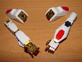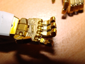 Sehr schön die die Hände, welche ebenfalls komplett aus den Goldteilen bestehen. Wirkt wirklich sehr hochwertig und macht einiges her. Auch an den Schultern werden Goldteile verwendet, leider werden diese nachher innen sein, so dass man sie nicht sieht.