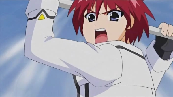 Ach da haben wir ja nocheine Loli. Zum Glück hat sich Vita seit damals nicht verändert und darf nun großartiges Batsu-gemu mit dem Energiekern des Raumschiffes von Jail Scaglietti spielen. Graf Eisen wandelt sich mal kurz in seine Zerstörungsform um und ab geht das Nüsse knacken. Schön finde ich auch, dass das Schutzsystem des Raumschiffes ein deutsches OS besitzt wie das Ancient Belka-Systeme von Graf-Eisen, Klarer Wind und Levantine und man so einige mal mehr mal weniger gelungene deutsche Sätze hören darf.