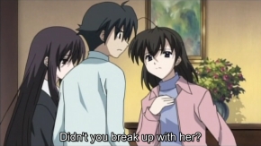 Saionji Sekai: Sie verhalf Kotonoha und Itou anfangs zusammen, jedoch hegte sie selber Gefühle für ihn. Durch das regelrechte aufdrängen Itous “überredete” er Sekai sozusagen mit ihm zu gehen, weil er Kotonoha satt hat. Sekai wird jedoch später von Itou mit dutzenden Mädchen betrogen u.a. auch mit Setsuna, Sekais beste Freundin, welche viel mehr aus Hilfe für Sekai mit Itou geschlafen hat. Gegen Ende stellt sich heraus, dass Sekai angeblich Schwanger von Itou ist.