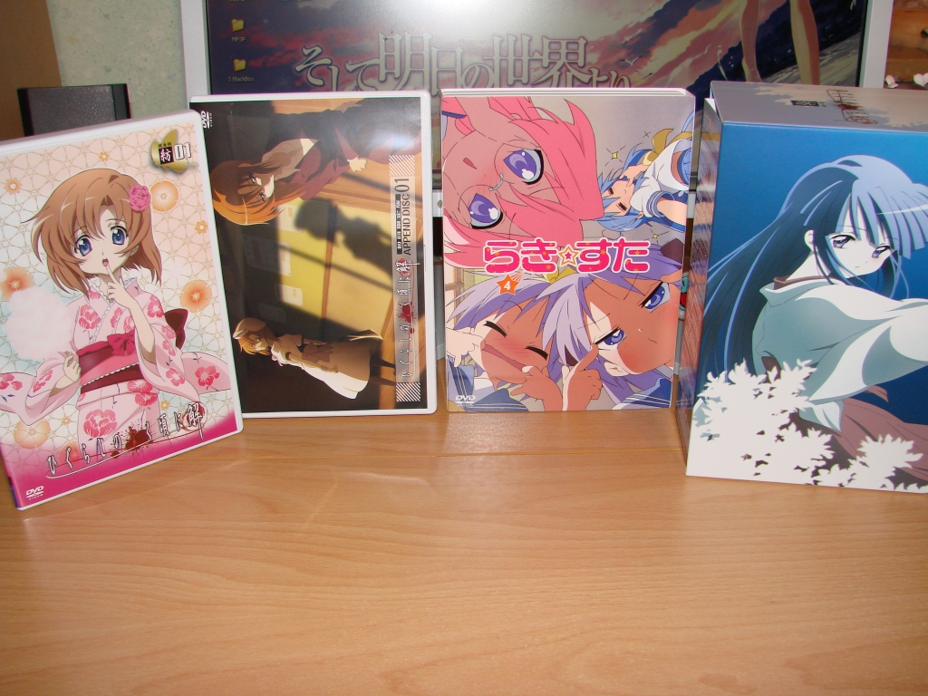 So, mal wieder eine kleine DVD Lieferung aus Japan frisch bei mir eingetroffen. Neben der monatlichen Lucky Star-Dosis gibt es nun auch die neuste Higurashi no Naku Koro Ni Kai DVDs dazu. Beides in der Limited Edition.
