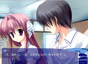 In “Clear” spielen wir die Rolle von Kôichi und nicht wie in den meisten Eroges üblich wird das Gesicht des Protagonisten gezeigt und nicht wie in anderen Eroges “gesichtslos” gelassen.