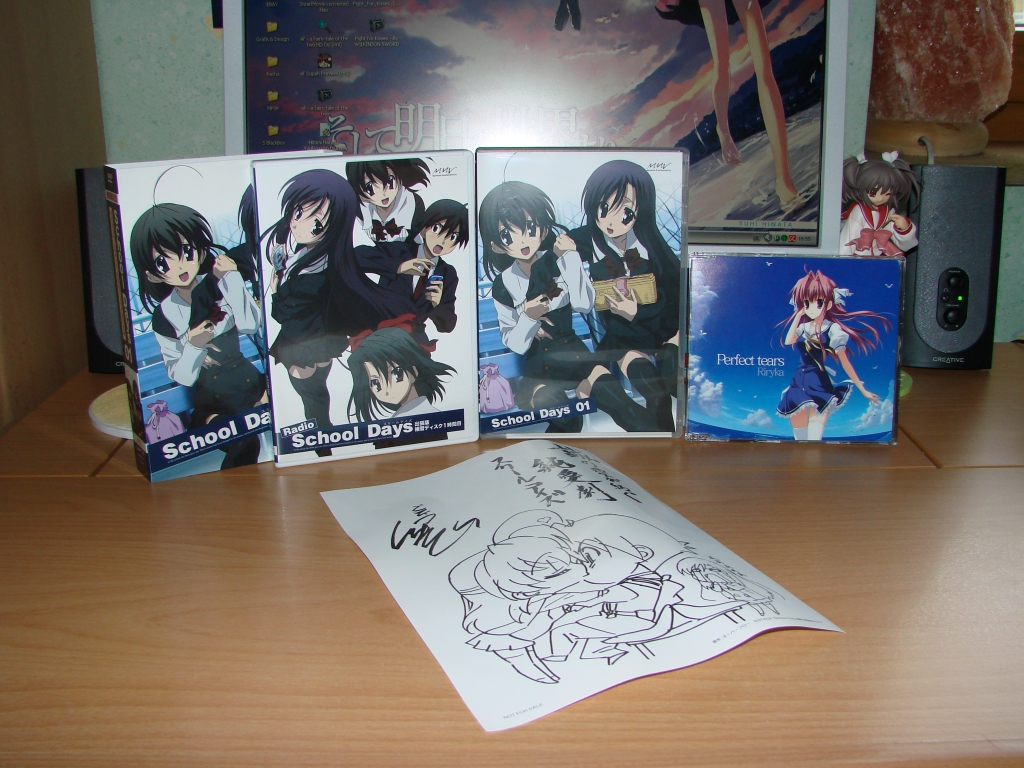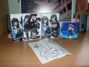 Da die Post gestern ihre Pforten geschlossen gelassen hatte (Perfect Timing wie immer *grr*) konnte ich eine neue Lieferung erst heute abholen. Enthalten war neben der OP-Single zu “Clear” auch die Limited Edition von School Days Vol.1.
