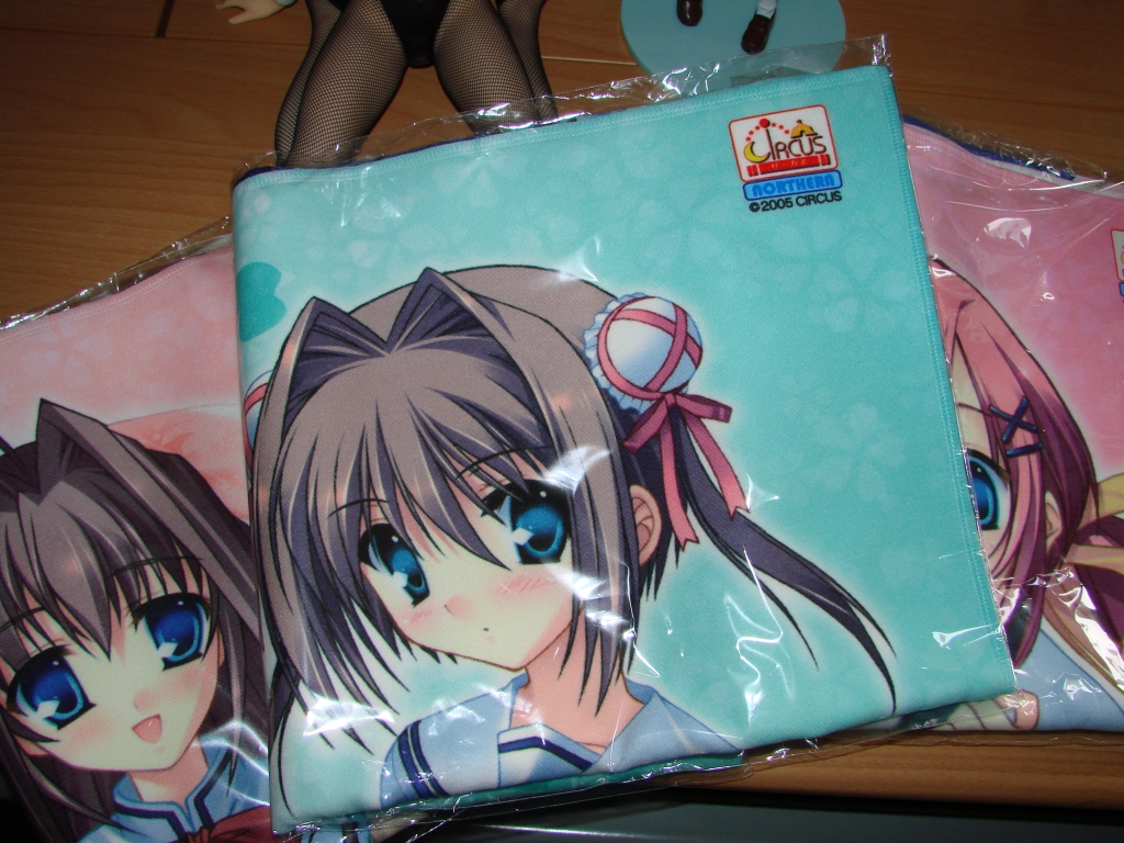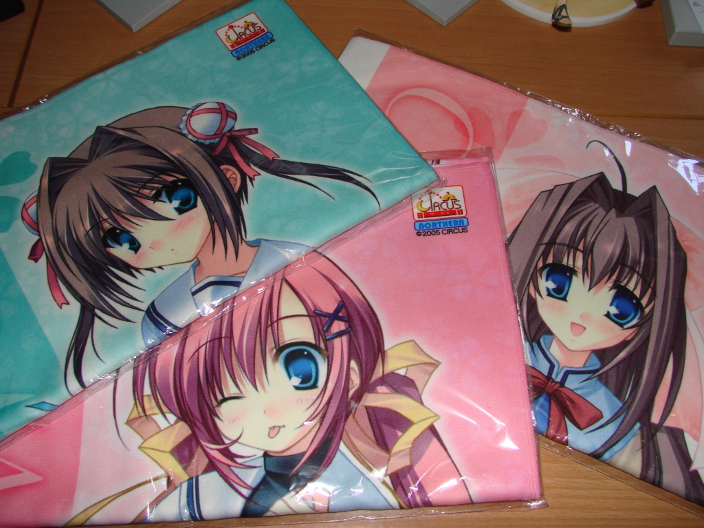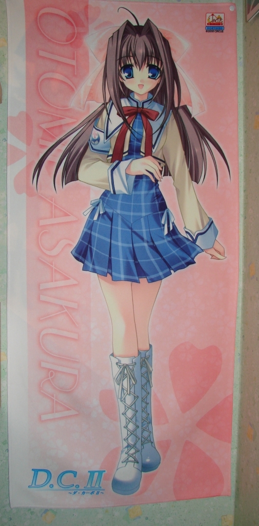 Passend zur D.C.II Animeumsetzung werden wir natürlich wieder mit vielem neuen Merchandise überschwemmt, u.a. mit Sports Towel vom Hersteller Broccoli. Da ich den D.C. Eroge nciht gerade abgeneigt war/bin habe ich natürlich meine Lieblings-Dreierkombo mit Yume, Otome und Nanaka bestellt. Die Verarbeitung ist sehr schön, jedoch würde ich diesen Sports Towel keinen anderen Nutzzweck zuschreiben als als Wandschmuck, denn diese Dinger sind relativ dünn gegen normale Handtücher. Wobei es bestimmt auch mal was hätte mit einem Bishoujo um den Hals im Freibad herumzulaufen…*schreibe Notiz für nächsten Sommer*. ^^