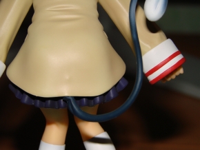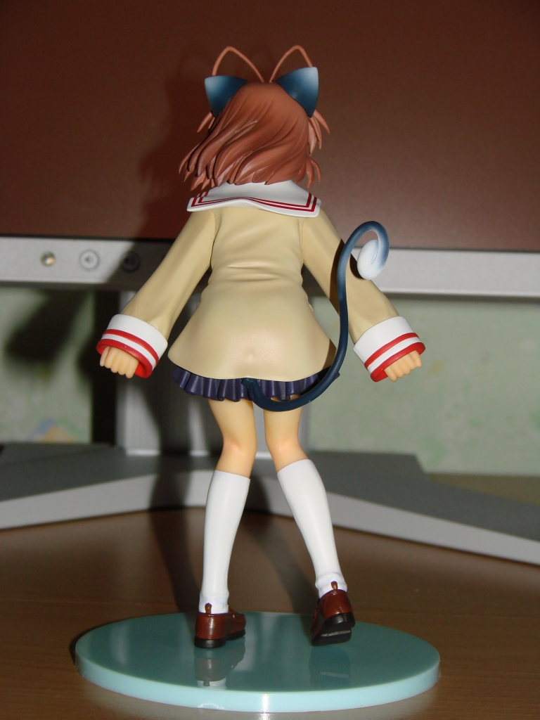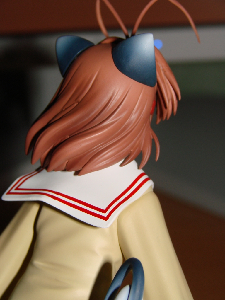 Die Statue hat als kleinen Zusatz ein Nekomimi-Set mit Ohren und Schwanz dabei. Die Ohren werden ganz einfach per Magnet befestigt, somit gibt es keine Steckverbindung und der Kopf bleibt auch noch ohne die Ohren schön anzusehen. Die Umsetzung und Ausarbeitung weiß zu gefallen und hat glücklicherweise nicht die für mich unerwünschten typischen Glanzeffekte die so manche Koto-Statue hat. Größtes Manko an dieser Statue ist die Base, welche farblich unpassender und hässlicher nicht hätte sein können. Warum sich Kotobukiya hier für solch eine enttäuschende Base entschieden hat ist mir nicht ganz klar, wenn man sich doch die schön gearbeiteten Bases der beiden anderen Statuen Kyou und Tomoyo anschaut. Vielleicht war im Budget nicht mehr drin, nachdem man Nagisa solch ein Nekomimi-Set spendiert hat? Ansonsten bin ich mit der Statue wirklich zufrieden, gut ok Kotobukiya typisch fällt die Statue etwas kleiner aus (wie schafft man es eigentlch bei gleichem Maßstab kleinere Statuen zu produzieren? Ein wohl nie lösbares Rätsel?).