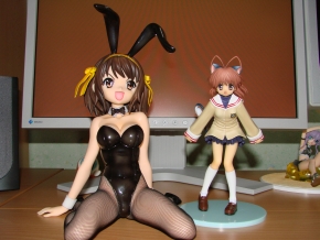 Die zweite Statue aus der Bunny-Reihe von FREEing und genau wie die Erste, welche ebenfalls in meinem Besitz ist, ist diese Statue nur noch schwer aufzutreiben(sofern man von der japanischen Fassung spricht). Haruhi gefällt mir optisch auf jeden Fall viel besser als Mikuru. Die Ausarbeitung ist genau wie bei Mikuru sehr gut, man kann wirklich nicht meckern was FREEing da wieder auf die Reihe gebracht hat. Auch hier kamen wieder echte Strümpfe zum Einsatz, d.h. mal wieder Vorsicht beim Platzieren.