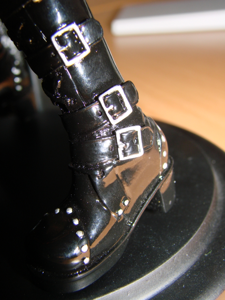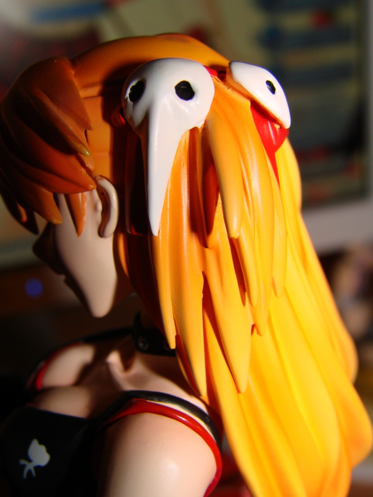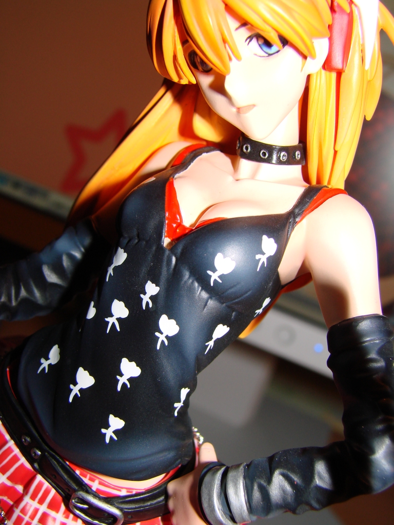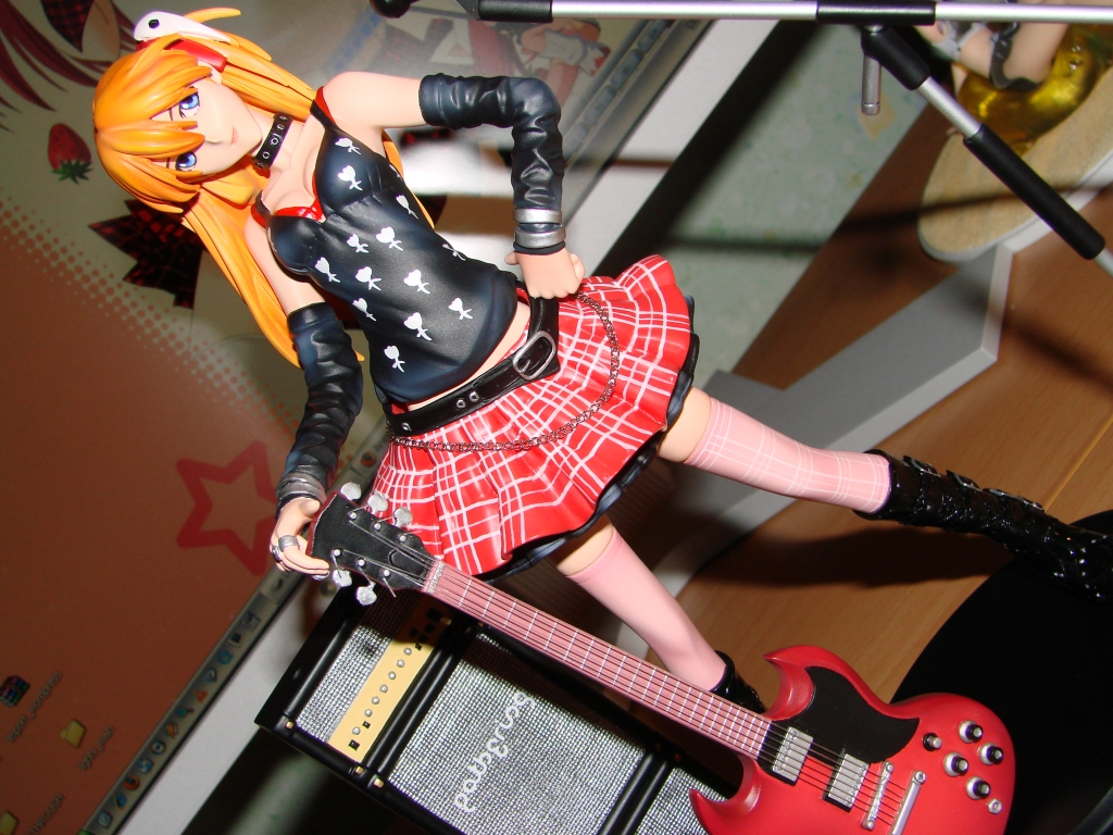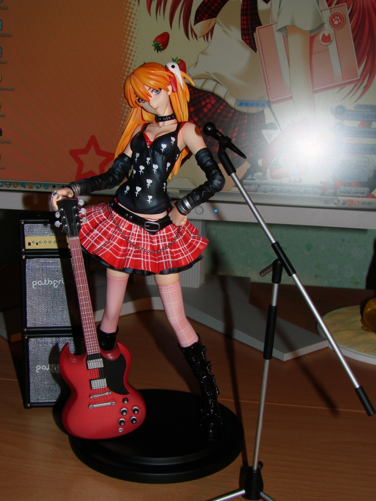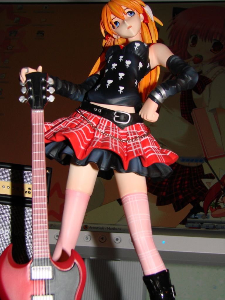 Nun aber zum neusten Erwerb und somit zum neusten Stück meiner Sammlung. Asuka dürfte wohl jedem aus NGE bekannt sein, jedoch dürfte die rockige Kit Variante eine Seite an ihr sein die wohl noch niemand so gesehen hat. Das Outfit und die Gitarre stehen Asuka ausgesprochen gut und passen auch wirklich zum Charakter. Die Arbeit ist mal wieder zufriedenstellend von E2046 ausgeführt worden und meckern kann ich dieses Mal auch nur eher wenig. Jedoch leistete sich E2046 dieses Mal einen Schnitzer bei der Bemalung des Lautsprechers, welchen ich ganz unten in diesem Review aufführen werde. Ansonsten ist die Bemalung wirklich wieder einwandfrei gelungen.
