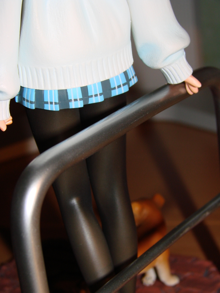 Das Kit wirkt definitiv anders im Vergleich zu meinen ganzen anderen Statuen, da es doch eher schlicht und “real” gehalten wurde. Es erinnert mich persönlich an eine einfache Momentaufnahme in einer herbstlichen Szenerie und genau diese Wirkung hat mich an diesem Kit angesprochen. Sofern ich momentan irgendwie Platz hätte wurde ich gerne eine herbstliche Atmo für diese Statue schaffen, also ein bisschen Deko wie z.B. Herbstblätter und ein/zwei Bäume im selben Maßstab. Dies würde bestimmt eine schöne Szene schaffen. Jaja nur der liebe Platz ist etwas eng, denn Rei muss ich leider eher seitlich in eine meiner Vitrinen stellen um sie überhaupt unterbringen zu können (böse Bodenplatte ^^). Nun aber weg von meinen Gedanken und hin zum kleinen visuellen Review dieser Statue.