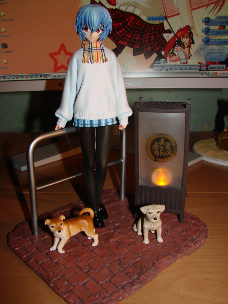 Eine meiner neusten Resin Statuen Erwerbe aus der Gathering-Reihe ist Rei Ayanami im Casual Wear Outfit, zwei kleinen Hunden und einer im japanischen Stil gehaltene Lampe. Ein Kit das eine schöne herbstlich-winterliche Stimmung hervorruft.