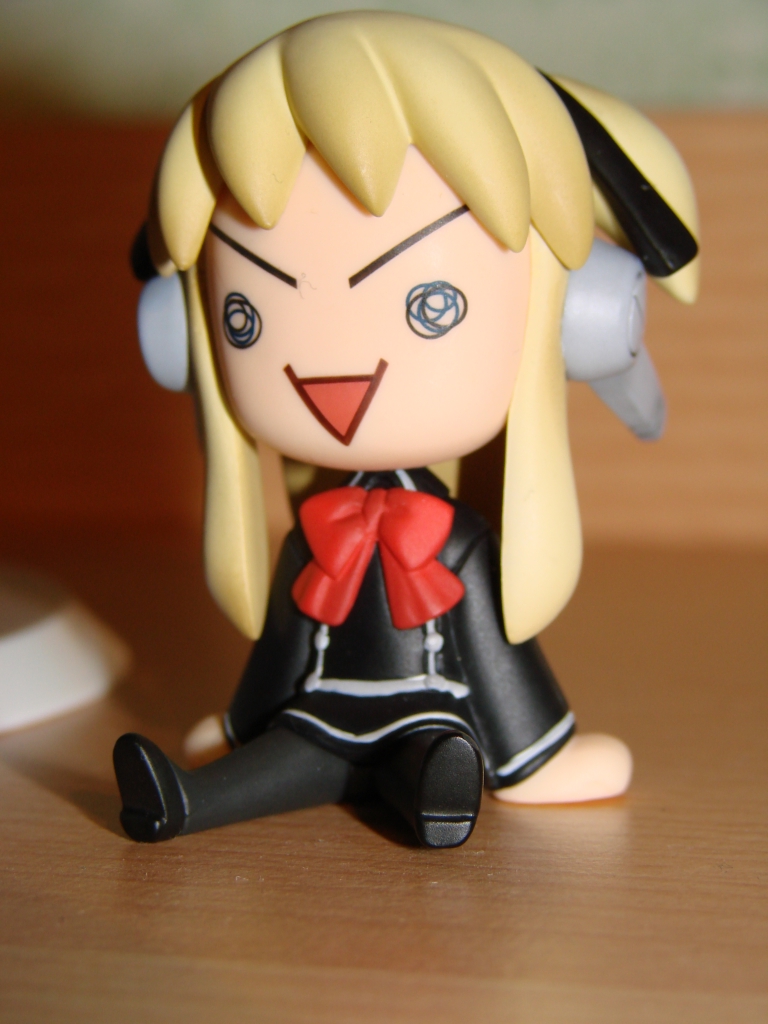 Ich fand Aloe von Beginn an richtig süss auch wenn ich mir bei dem etwas flach wirkendem Gesicht unsicher war. Letztenendes musste ich sie dann aber doch haben. Das gesicht finde ich zwar immernoch etwas flach wirkend, aber sie schaut einfach toll aus. Vorallem die Kombination der Haarfarbeund Schattierungen mit dem scharzen Kleid finde ich einfach super. Die Kniestrümpfe sind auch richtig schön schattiert worden. Qualität ist eben mal wieder typisch ALTER, nämlich sehr gut. Mit Aloe wird ebenfalls noch eine austauschbare rechte Hand mitgeliefert in welcher sie ein farbiges Ei hält. Man vergebe mir, dass ich den Karton bereits verstaut habe und so kein Bild von der Hand machen konnte. Allerdings gibt’s dafür Bilder von der ebenfalls mitgelieferten CPU Shalon. Diese Figur ist ebenfalls schön gearbeitet hat aber manchmal leichte Probleme sitzen zu bleiben, aufgrund ihres schweren Kopfes.