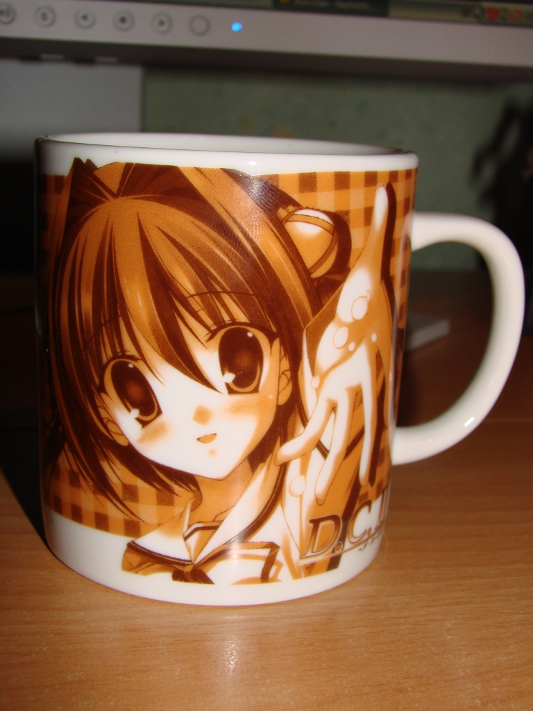 Je nach Laune braucht man auch mal ein anderes Bishoujo auf der Tasse. In diesem Fall Asakura Yume aus D.C.II. Die Tasse ist glücklicherweise wieder größer und nicht so klein wie die damalige Shana-Tasse, also perfekt zum Schlürfen geeignet. ^^