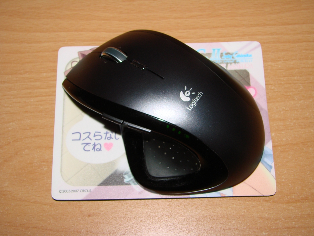 Hier seht ihr ein Bild wie ich meine Maus auf dem Mousepad abgelegt habe. Ganz ehrlich, viel mit “Maus bewegen” ist so nicht mehr. Das sogenannte Mousepad würde ich wohl eher als Maus-Ablage sehen oder noch besser als Abstellfläche für eine meiner Bishoujo-Tassen oder Gläser, damit der Arbeitstisch verschont bleibt.