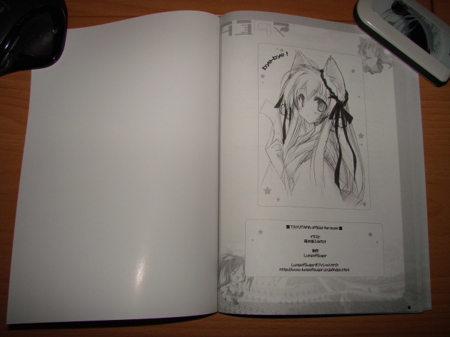 Der First Print Limited Edition lag ebenfalls ein Official Fan Book bei, welches schwarz/weiss Zeichnungen und CGs aus dem Eroge enthält. Das Fan Book habe ich mal kurzerhand einfach komplett abgeknipst, da es sowieso nicht sonderlich dick war und somit keine wirkliche aufwendige Arbeit war.