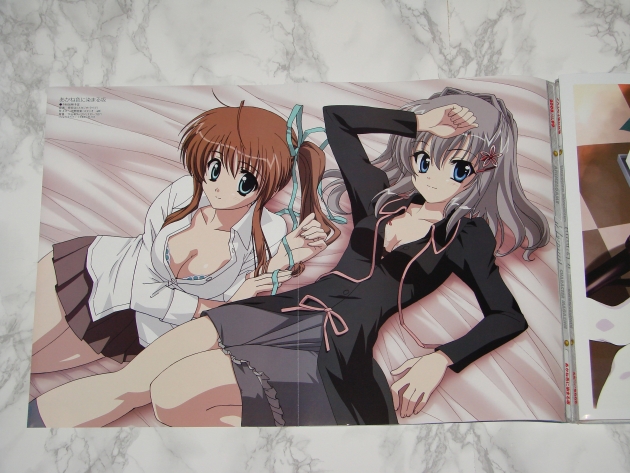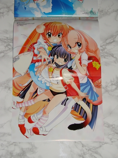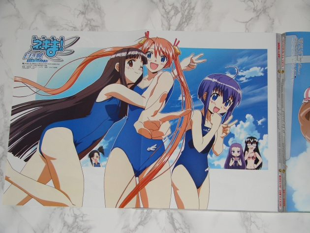 In dieser Ausgabeist mal wieder eine Drama CD enthalten, außerdem ein Shitajiki und natürlich die typischen Poster. Insgesamt sind in dieser Ausgabe 20 Poster enthalten, also insgesamt 10 Seiten an Postern. Die zweiseitigen Poster haben die typischen Maße von 29,5 x 43 cm. Auf dem Shitajiki sind zum einen Louise vom Magazincover wie auch Kanokon no Fanservice auf der anderen Seite drauf.