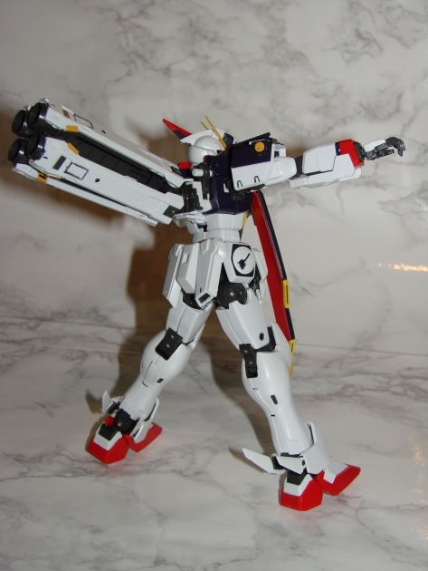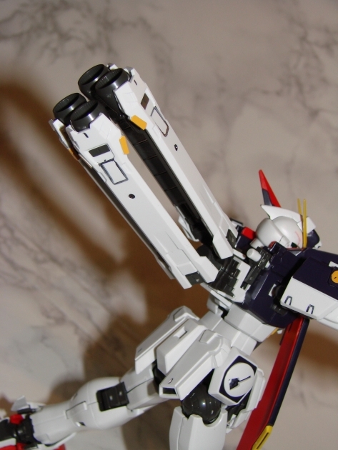 Die vier Antriebe am Rücken des Gundam stammen vom altbekannten Core-Fighter, welcher bei Bedarf aus dem Gundam genommen und einzeln dargestellt werden kann. Leider sitzt mein Core-Fighter dermaßen fest im Gundam (obwohl ich ihn nur leicht eingesetzt habe), dass ich keine Einzelbilder von ihm liefern kann. ^^”