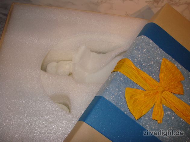 Im Geschenkspäckchen findet sich das Kit wieder. In diesem Fall seht ihr nur noch die ganzen Polsterungen, welche das Kit bei seinem langen Weg beschützt haben.