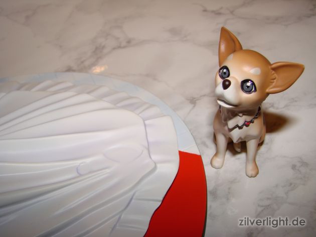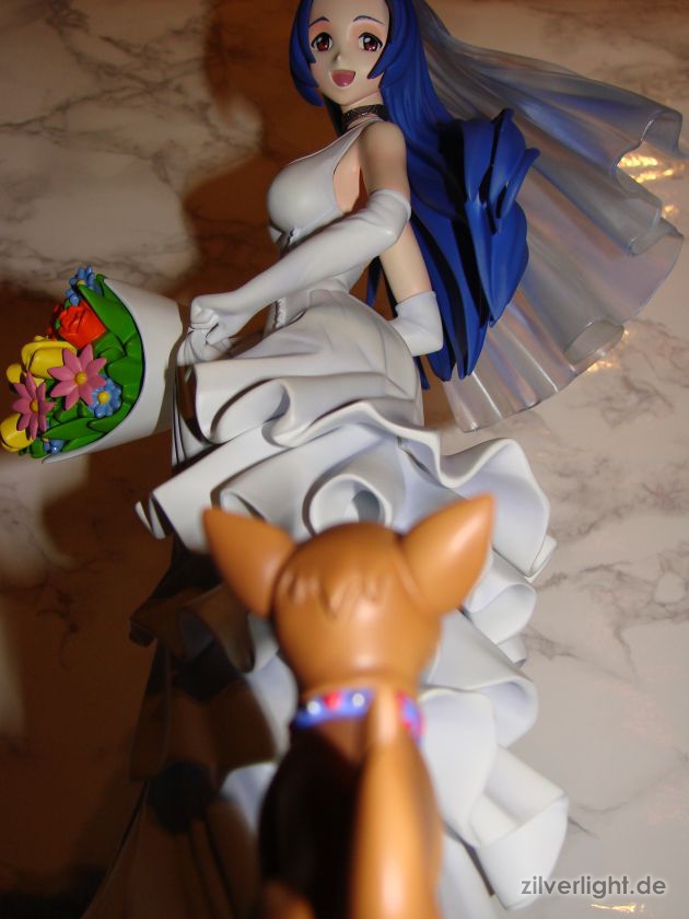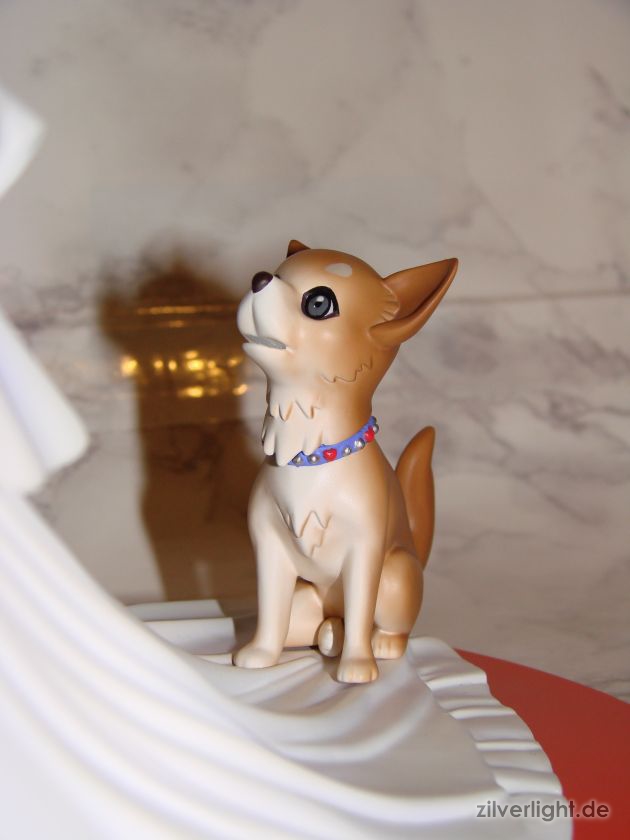 Wandern wir nun zur Fotostrecke weiter. Hierbei muss ich noch anmerken, dass an der Statue leider noch eine Haarsträhne, das Band am Blumenstrauß und der Brief im Mund des Hundes fehlte als ich die Fotos geschossen hatte. E2046 hatte die wirklich gut im Karton versteckt und mir ist das leider erst am Ende so wirklich aufgefallen als ich nochmal überlegte “sag mal, da fehlt doch was”. Schande über mein Haupt, aber die Statue sieht auch so sehr fein aus. Ansonsten Licht mal wieder so eine Sache bei den Bildern, so langsam sollte ich ernsthaft über ein kleines Lichtstudio nachdenken…wenn ich den Platz zum Aufbewahren noch hätte. ^^”