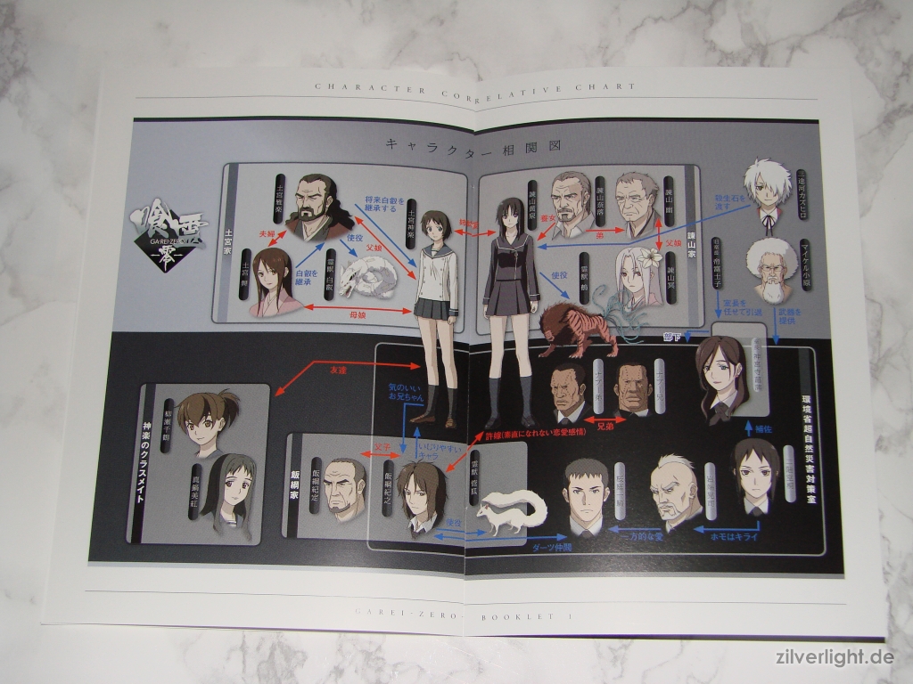Neben einer kleinen Erklärung der Geschichte der ersten beiden Folgen enthält das Booklet eine Auflistung der Charaktere, welche wir ab Folge 2 bis zum Schluss der Serie begleiten, und zusätzlich werden noch die verschiedenen Beziehungen der Charaktere untereinander aufgezeigt.