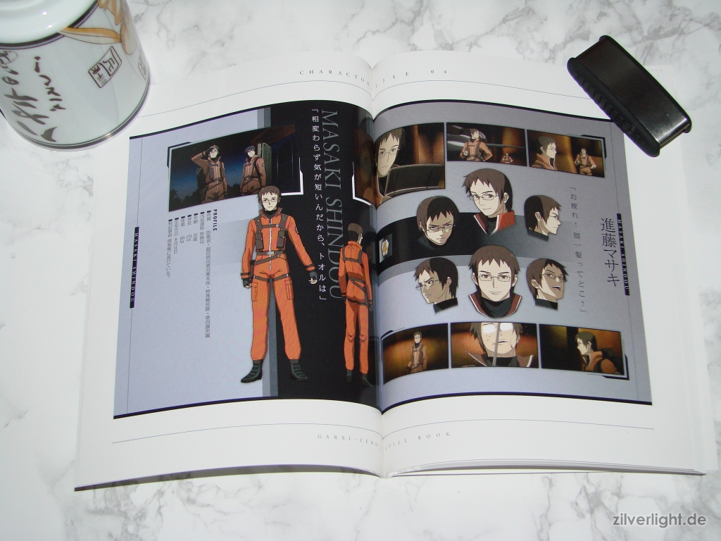 Das Photo Book enthält dutzende Aufnahmen der Materialsammlung für die Schauorte in Ga-Rei -Zero-. Des Weiteren sind Character Profiles der Charaktere der ersten Folge enthalten. Insgesamt ist das Photo Book noch inkomplett, daher liegt jeder weiteren Limited Edition DVD von Ga-Rei -Zero- ein 60-seitiges Photo Book bei. Dies bedeutet die schlussendliche Größe der Reihe wird 360 Seiten betragen. Der letzten Limited Edition wird eine Box beiliegen in welcher man diese 6 Bände unterbringen kann.