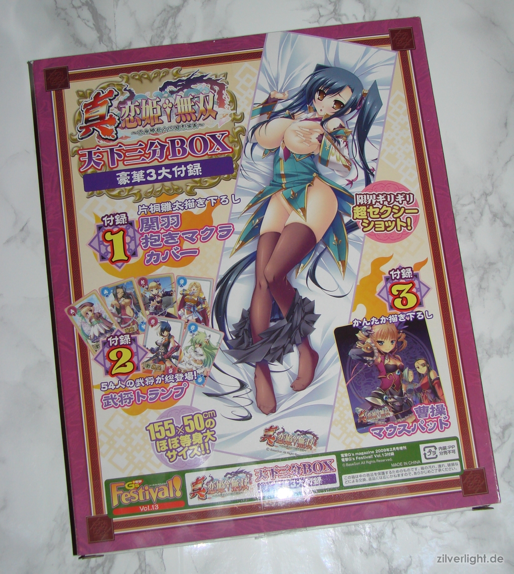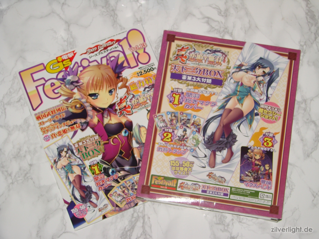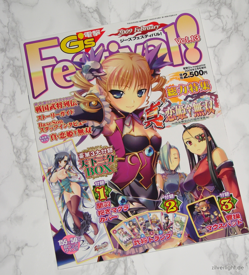 Und wieder einmal eine neue Ausgabe der normalen Dengeki G’s Festival. Dieses Mal konzentriert sich die komplette Ausgabe auf das neue Koihime Musou Eroge von BaseSon, simpel benannt “Shin Koihime Musou”. Ebenfalls gibt es ein wenig über die neue Koihime Musou OVA mit einem netten Kanu pantsu pic. Dieser Ausgabe liegen natürlich wieder drei obligatorische Koihime Musou bezogene Extras bei. Hier im Beitrag gibt es wieder Bilder der kompletten Ausgabe wie auch der Extras.
