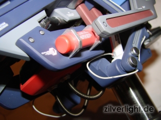 Wie bereits erwähnt kann die Büste durch zwei Möglichkeiten mit Minovsky Partikel versorgt werden. Man hat die Wahl zwischen vier AA-Batterien oder einem AC Adapter, welcher jedoch einen Steckeradapter für das dt. Stromnetz benötigt, sofern man keinen heimischen AC Adapter besitzt.