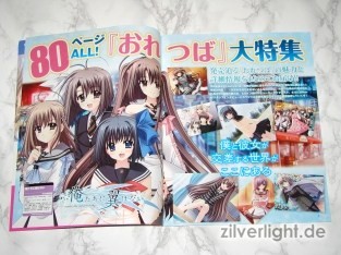 Hier die beiden Ausgaben. Eine ist hierbei ausgepackt, die andere habe ich zur Archivierung verschweisst belassen. Das beiliegende Heft umfasst insgesamt 80 Seiten, welche sich komplett Oretachi ni Tsubasa wa Nai widmen. Der umfassende Inhalt ist dabei Illustrationen der weiblichen Charaktere, Charakter Profile, Story Zusammenfassung, Interviews der Belegschaft, uvm..
