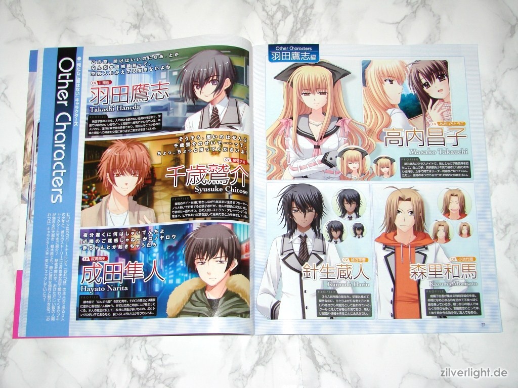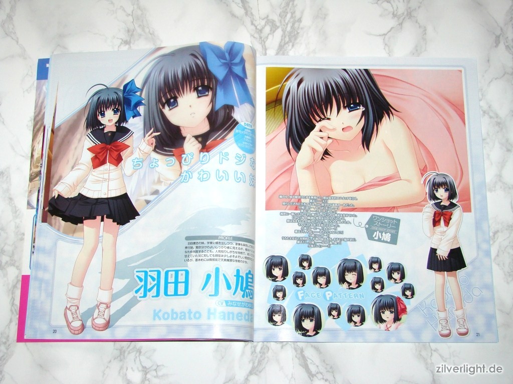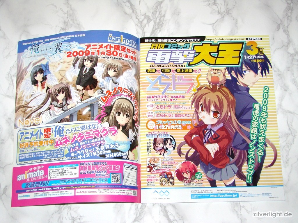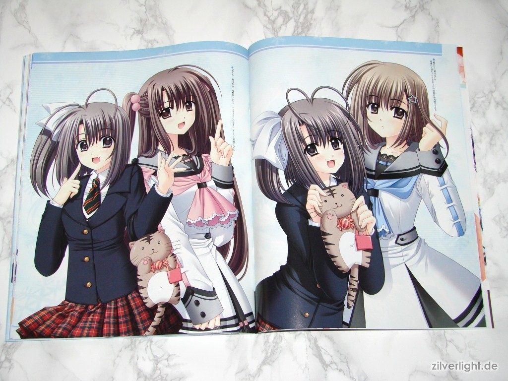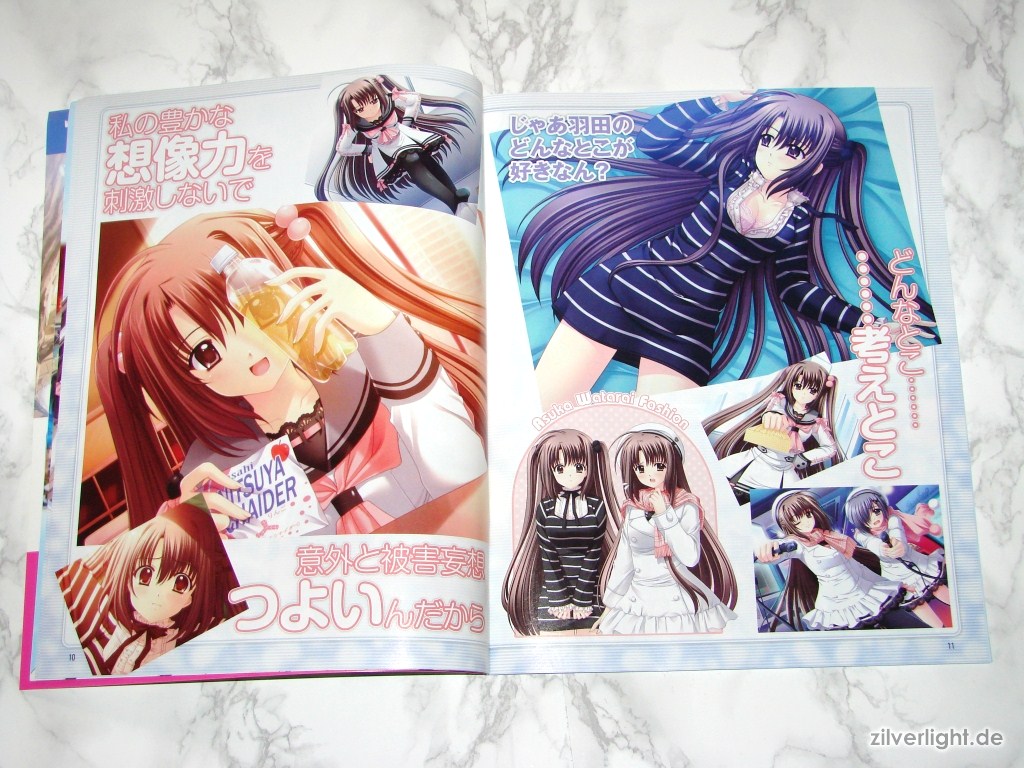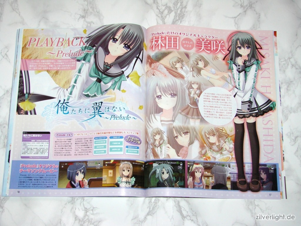 Hier die beiden Ausgaben. Eine ist hierbei ausgepackt, die andere habe ich zur Archivierung verschweisst belassen. Das beiliegende Heft umfasst insgesamt 80 Seiten, welche sich komplett Oretachi ni Tsubasa wa Nai widmen. Der umfassende Inhalt ist dabei Illustrationen der weiblichen Charaktere, Charakter Profile, Story Zusammenfassung, Interviews der Belegschaft, uvm..