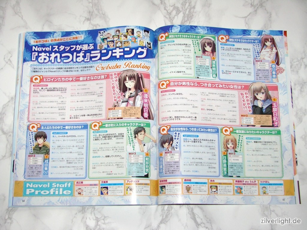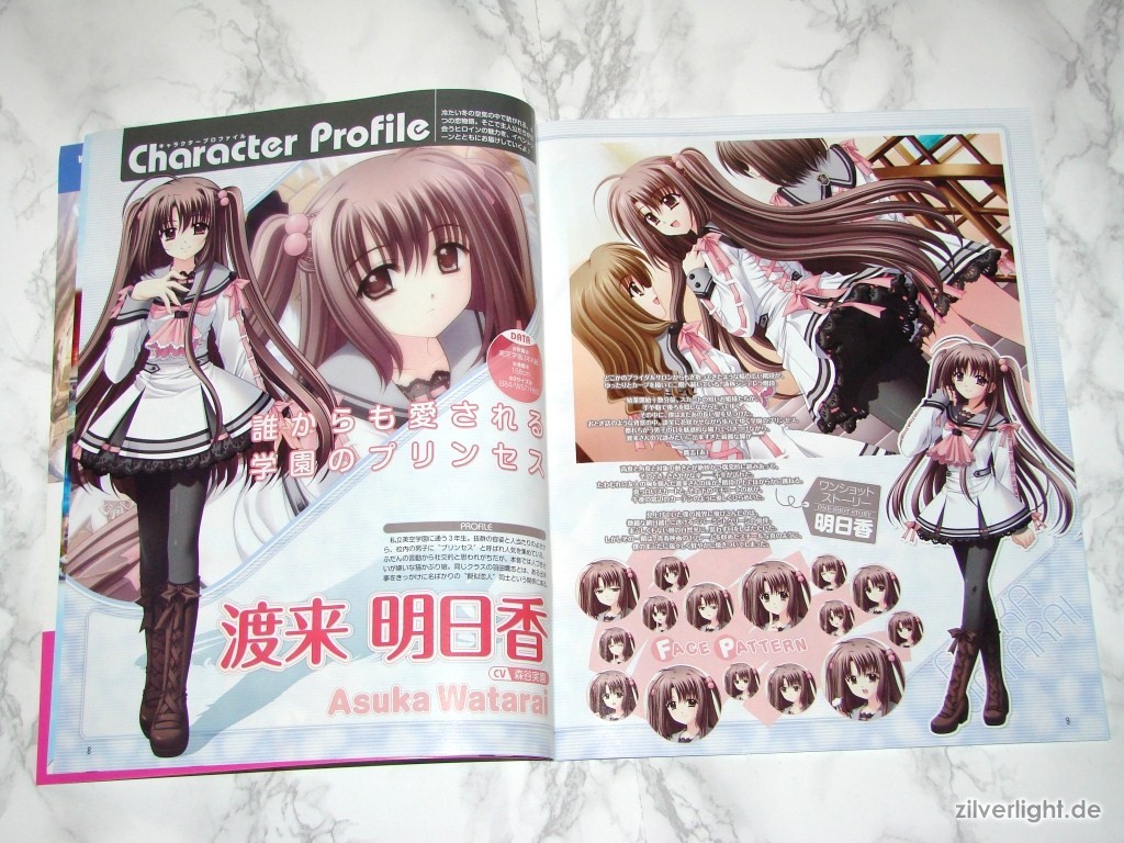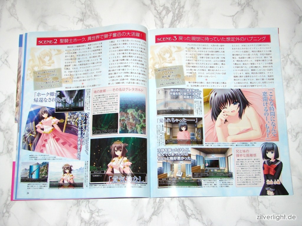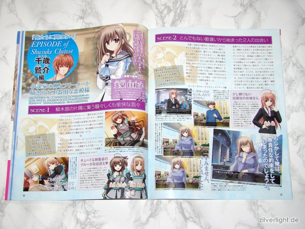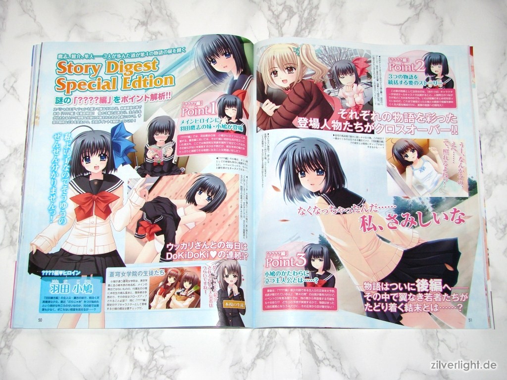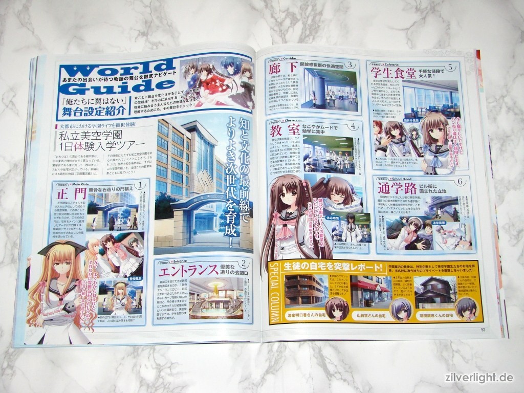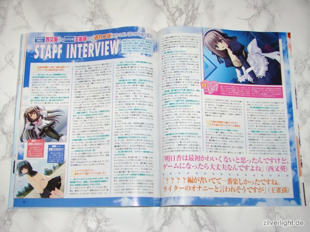 Hier die beiden Ausgaben. Eine ist hierbei ausgepackt, die andere habe ich zur Archivierung verschweisst belassen. Das beiliegende Heft umfasst insgesamt 80 Seiten, welche sich komplett Oretachi ni Tsubasa wa Nai widmen. Der umfassende Inhalt ist dabei Illustrationen der weiblichen Charaktere, Charakter Profile, Story Zusammenfassung, Interviews der Belegschaft, uvm..
