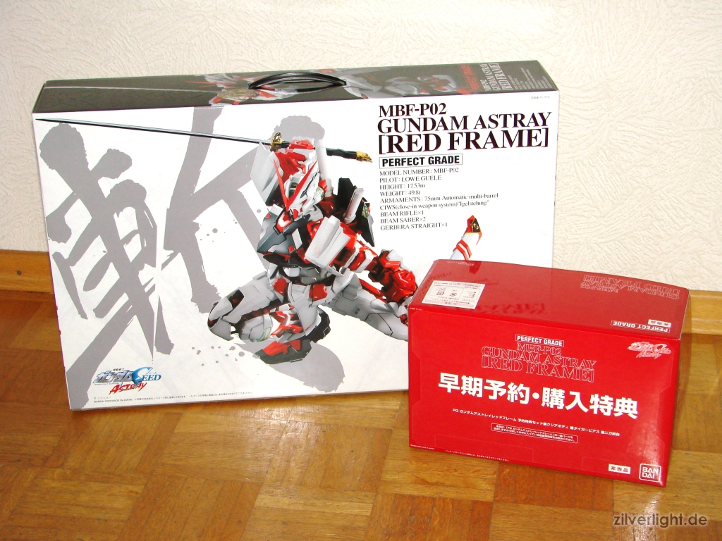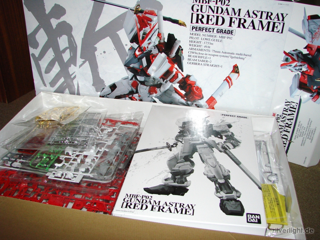 Bisher war ich ja immer ein Anhänger der Master Grade Gunplas, angenehme Größe und detailmäßig auch immer sehr schön. Nun das liegt zum einen auch an der für mich attraktiveren Angebotsbreite wie natürlich auch am Preis. Immerhin kann man etwa 3 bis 4 MG-Kits für den Preis eines PG-Kits kaufen. Nun PG-Kits sind ohnehin nicht unbedingt für den Massenmarkt gedacht. Außerdem gab es bisher immer nur ein Kit, den RX-78 Gundam GP01/Fb, welches mir die PG-Anschaffung wirklich wert gewesen wäre. Eigentlich wäre dies wohl auch mein erstes PG-Kit geworden, wenn es da nicht vor kurzem den PG-Release des Gundam Astray Red Frame gegeben hätte.