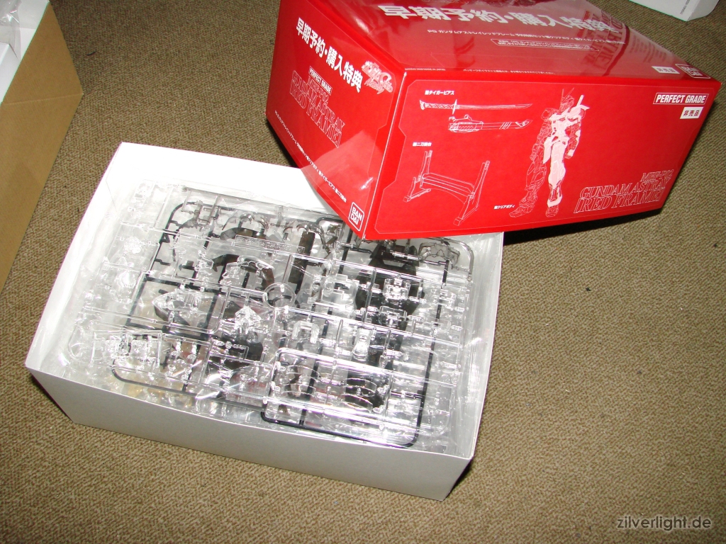 Allein der PG Gundam Astray Red Frame bietet 36 Runner (Gitter) mit Teilen. Die Initial Production Version Box enthält nochmal weitere 12 Runner mit Teilen.