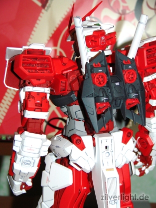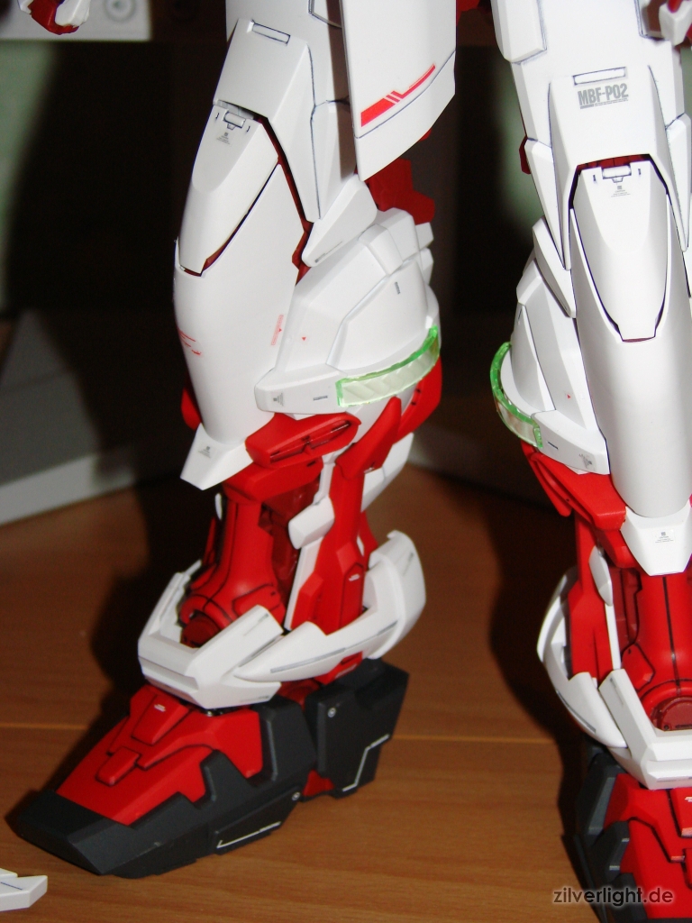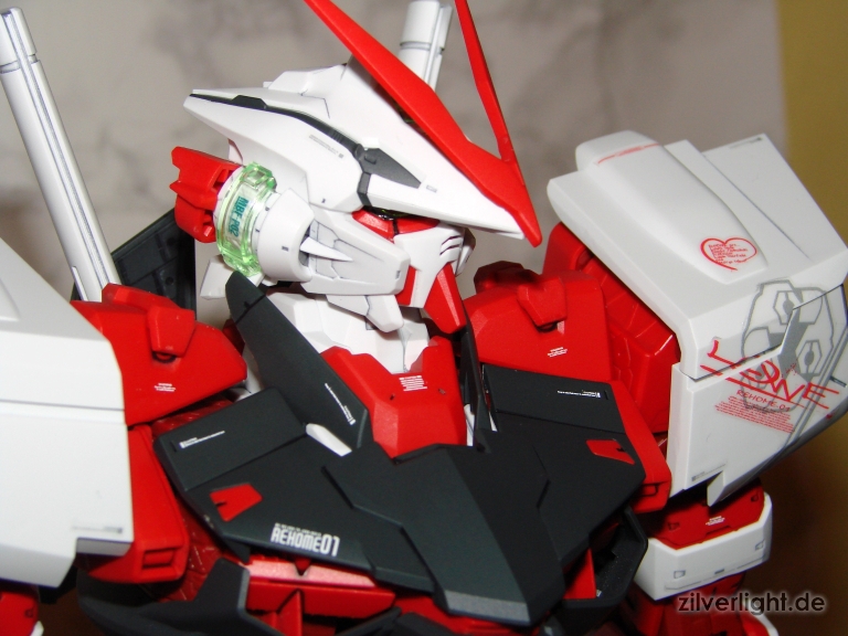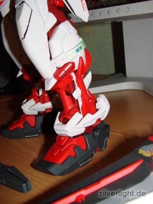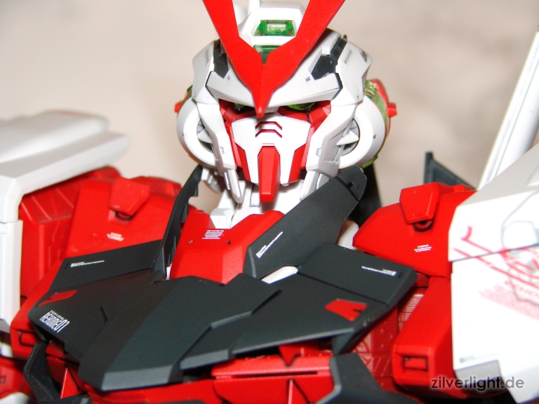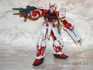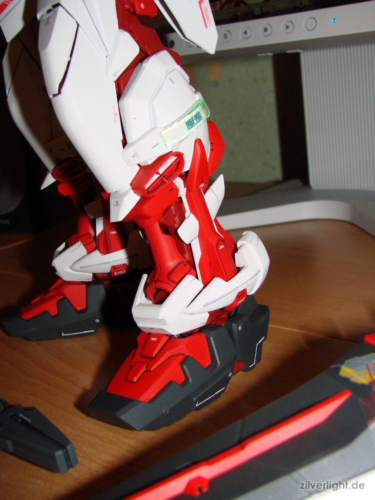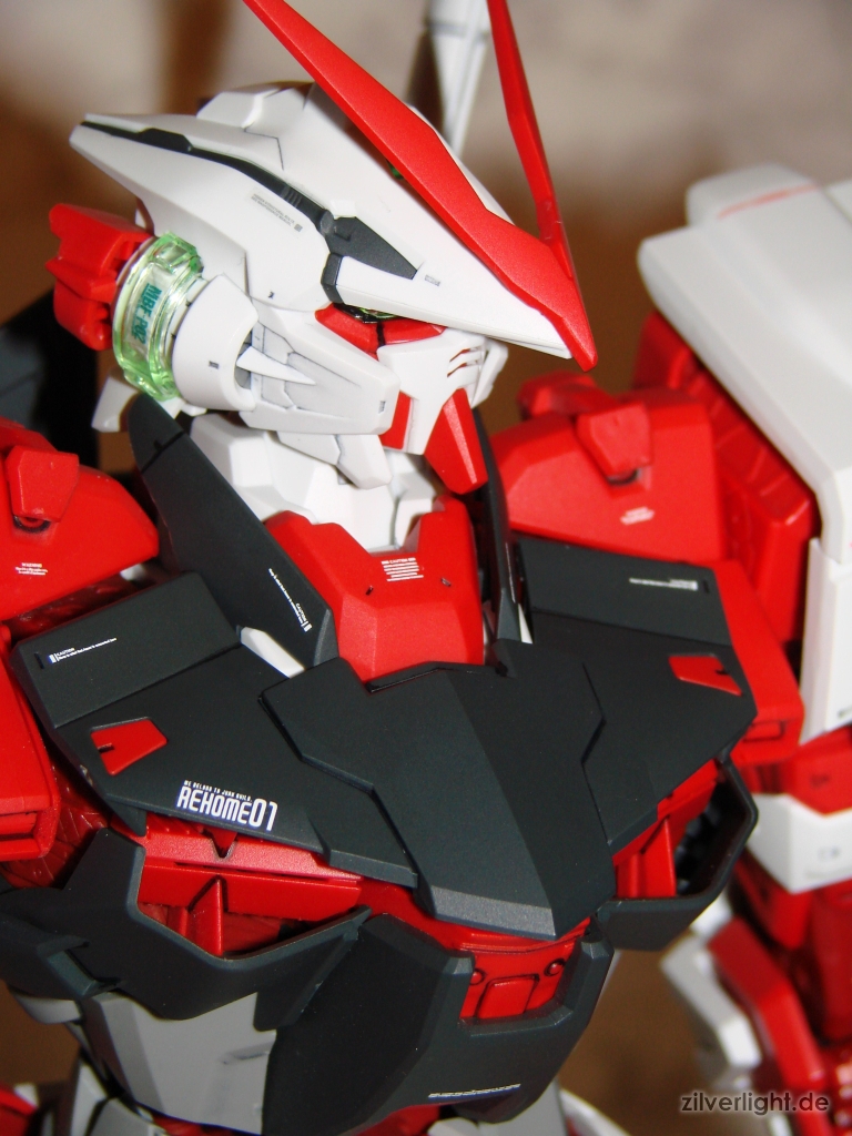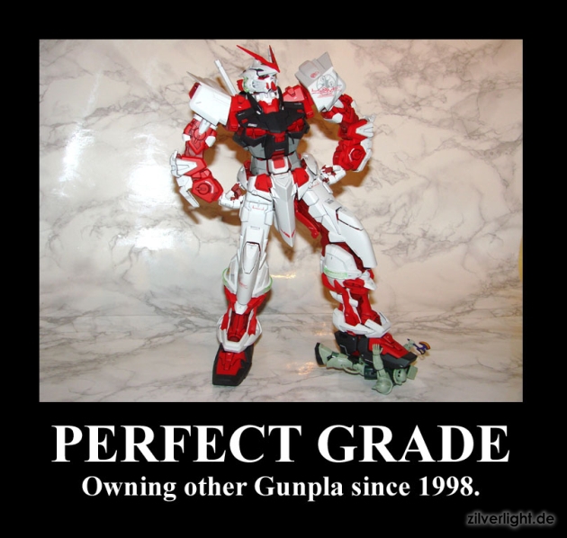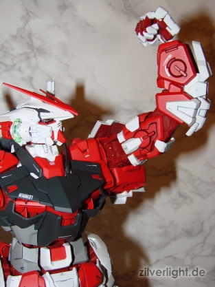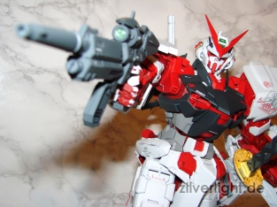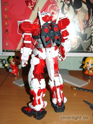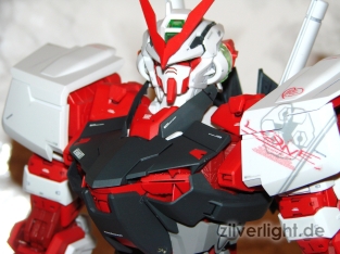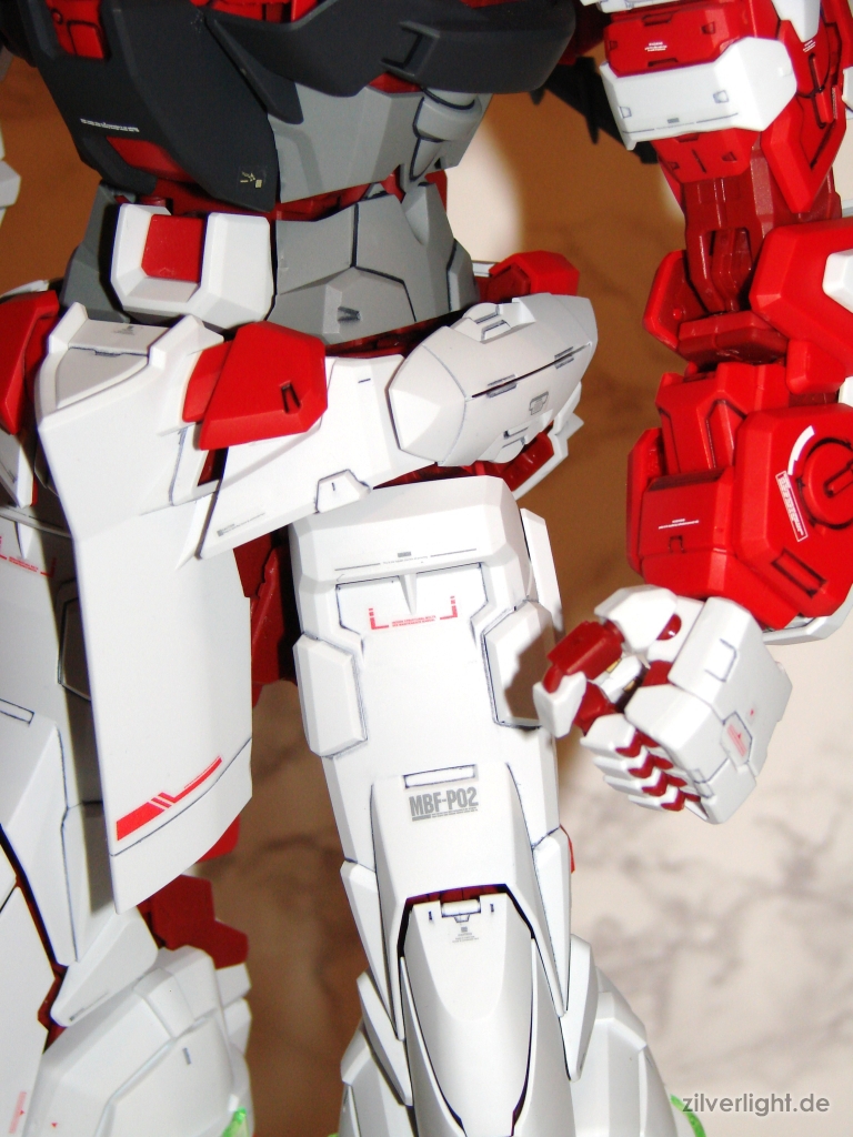 Die letztendliche Optik des Gundams gefällt mir wirklich ausgesprochen gut, wobei man hier selbstverständlich ein klein wenig Arbeit in Decals und panel lining stecken muss. Was die Features angeht ist es ein wenig schade, dass der Astray das erste PG-Kit ist, welches keine offenzulegenden Rüstungsteile besitzt. Auch die eingeschränktere Beweglichkeit durch die Rüstung ist ein wenig schade. Allerdings ist der Astray auch mit der Einschränkung in Sachen Bewegung trotzdem in wunderbare Posen zu bringen, sicherlich noch bessere als ihr sie hier sehen werdet (^^”). Mit Ausnahme der eingeschränkteren Beweglichkeit und den nicht offenzulegender Rüstungsteile, welche ich ohnehin nur als nettes Gimmik ansehe und wohl nur ein/zwei Mal wirklich anwenden würde, habe ich an dem Kit wirklich nichts auszusetzen. Der PG Astray wird auf jeden Fall nicht mein letztes PG gewesen sein, jedoch zumindest für längere Zeit, denn vorher müssen erst mal wieder ein paar MGs her (^^).