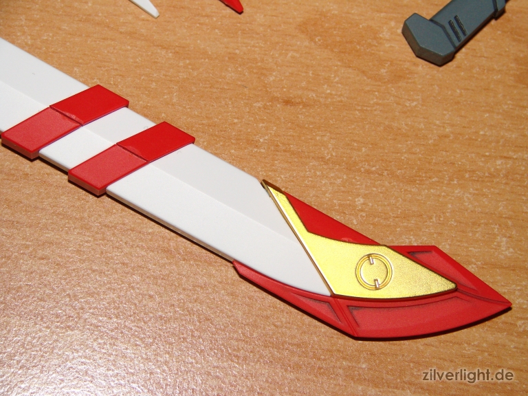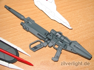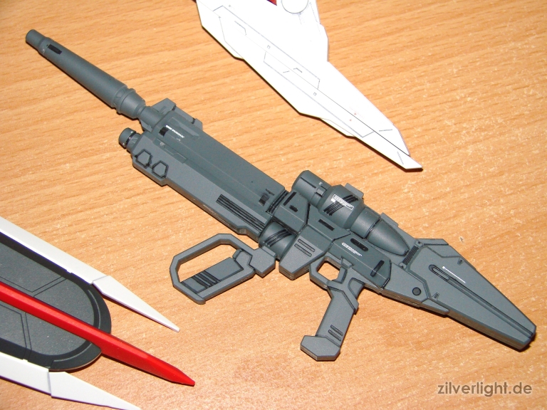 Wie bereits in den vorherigen Beiträgen erwähnt habe ich die Initial Production Box mit dem Tiger Pierce Katana und den anderen Zusatzteilen noch nicht angerührt. Daher hier nur das Gerbera Straight Katana, die Type 71 Beam Rifle, das Schild und natürlich die Katanahalterung für den Astray.