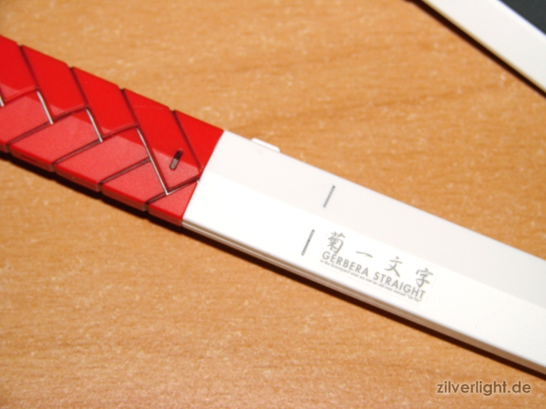 Die Klinge des Katana habe ich völlig unbehandelt belassen, da der Versuch mit TopCoat am Gitter nicht sehr überzeugend aussah.