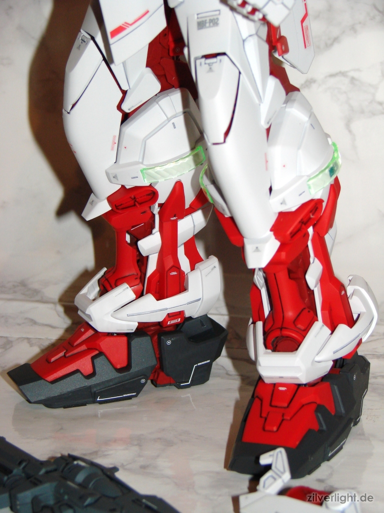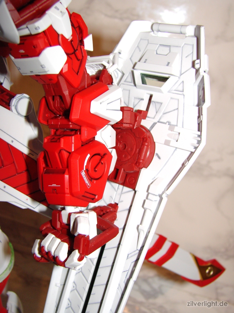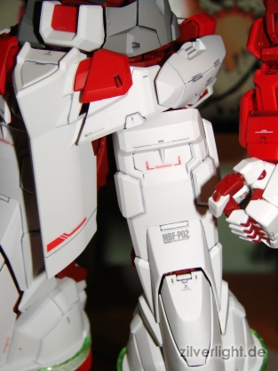 Das Perfect Grade Kit wurde übrigens im Vergleich zu den vorherigen Kits nochmal ein wenig im Design überarbeitet. Meiner Ansicht nach hat sich die Überarbeitung wirklich gelohnt. Vorallem die Decals/Sticker, hierbei u.a. das an der linken Schulter, passen besser zum insgesamten Erscheinungsbild wie ich finde.