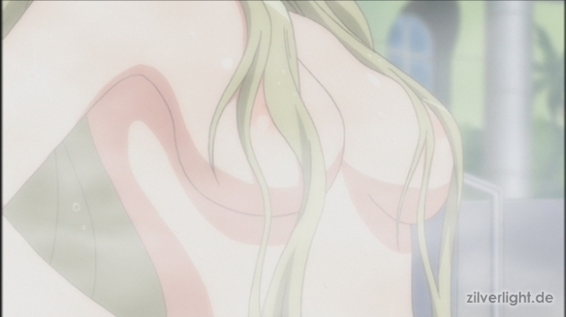 Wieder zurück zum Tenjouin Haushalt in welchem Riko erstmal gut verköstigt wird und danach schon ein zweites Mal in dieser Folge im Bad landet.