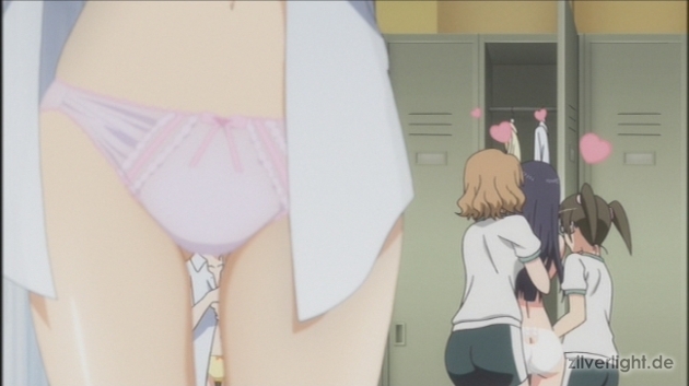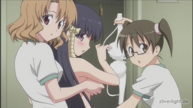 Risa und Mio helfen Oshizu scheinbar auch gleich beim Ausziehen.