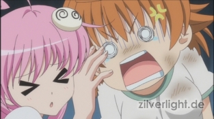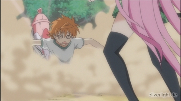Die neueste Entwicklung von Lala, Pai-pai Rocket-kun, mit welchem sie ihre Brüste nach Ritos Vorliebe ändern kann. Moment, gab es kurz zuvor nicht noch eine anderes Vorkommnis? Wenn man vom Teufel spricht, Rito stürzt mit Punktlandung auf Pai-pai Rocket-kun. Yami das sind 100 Punkte für Treffergenauigkeit. (^^)