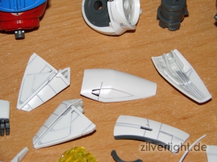 Das Einzigste was noch keine Farbe abbekommen hat sind die Vulcans an der Head Unit, da warte ich gerade noch auf meine Lieferung mit neuen Gundam Markern.