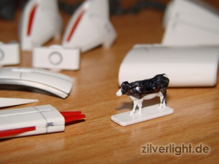 Und nicht zu vergessen das wichtigste und beste Gimmik unter allen Gundam Kits, die Kuh aus Turn A Gundam. Ja, ich habe sie tatsächlich angemalt (Piloten usw. lasse ich ansonsten unberührt), auch wenn ich sie wohl nie brauchen werde. Freut euch im fertigen Review auf milchige Freuden mit Turn A. (^^)