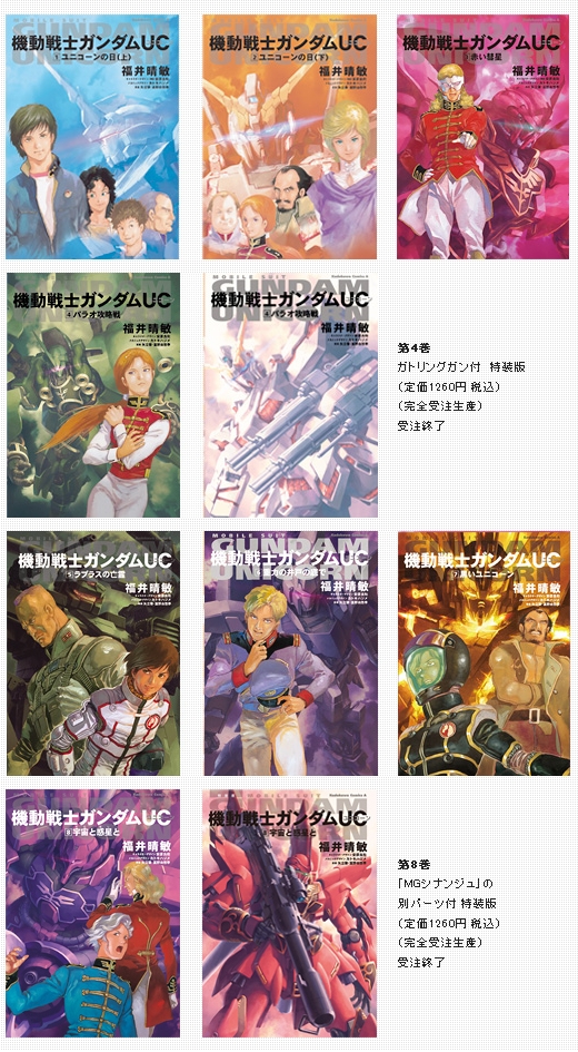 Aktuell stellt sich noch die Frage inwieweit Sunrise der Vorlage folgt oder ob an der Abfolge der Geschehnisse etwas umorganisiert wird, denn der Episodentitel zur dritten Folge “The Specter of Laplace” ist zugleich der Titel des fünften Light Novels von Gundam UC. Die Reihe umfasst bisher 8 Light Novels, die restlichen Kapitel werden die letzten beiden gebundenen Light Novel ausmachen und somit bestünde die Reihe aus insgesamt 10 Light Novels (die letzten beiden Bände sollen am 26.August 2009 erscheinen). Der Gundam UC Light Novel ist damit abgeschlossen.