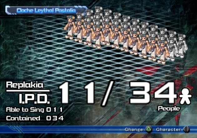 Diese Fähigkeit steht nur Cloche zur Verfügung und kann von den I.P.D.s gestärkt werden (insgesamt gibt es 100 I.P.D.s um das System zu stärken). Um I.P.D.s in das System hinzufügen zu können muss man sie durch das besiegen und heilen, wie auch durch das erfüllen kleiner Aufgaben in den Cloche Fan Club holen. Durch Replakia wird die Burst Gauge, gemessen an den verfügbaren I.P.D.s, in die Höhe getrieben. Dies führt je nach Menge der beigetretenen I.P.D.s zu enormen Burst Gauge Werten und kann so eine enorme Song Magie entfesseln.