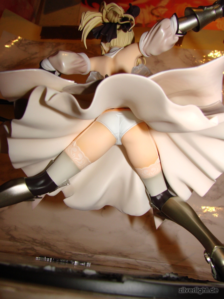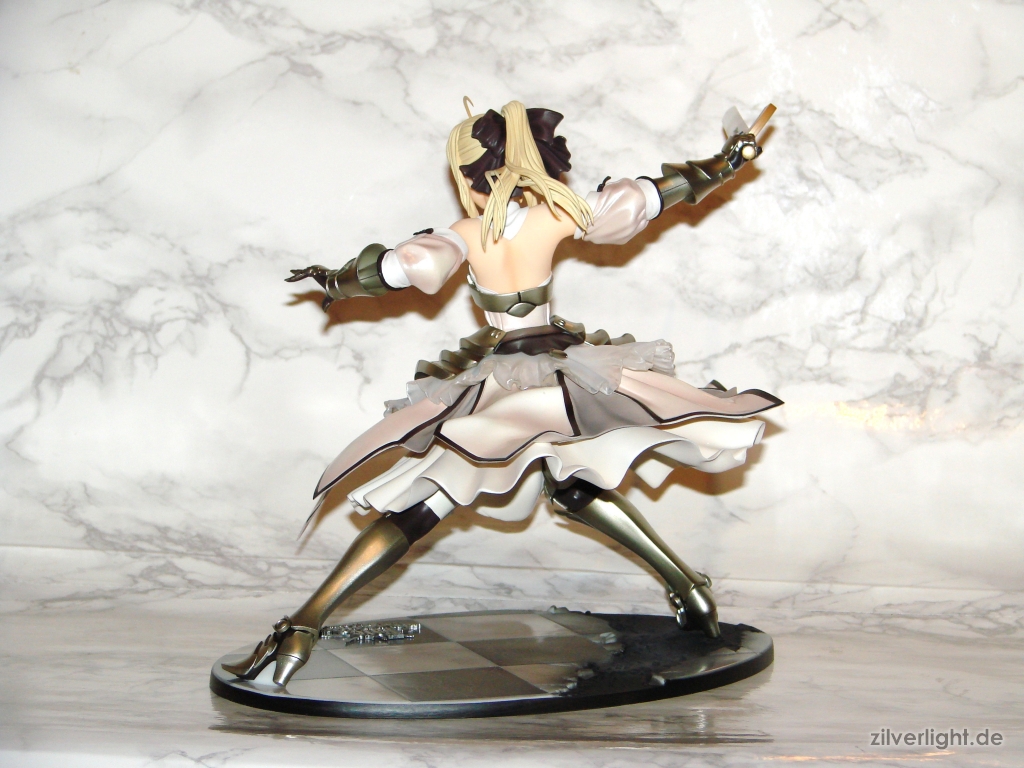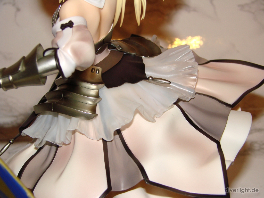 Das mehr Prinzessinnen mäßige Outfit von Saber in der Lily Version dürfte wohl für viele sehr ansprechend sein und eventuell sogar in der Beliebtheit höher stehenals ihr typisch blaues Outfit. Das Outfit ist zumindest ein weiterer Hingucker für mich, welches in der Präsentation bei dieser Statue wirklich fein herausgearbeitet wurde.
