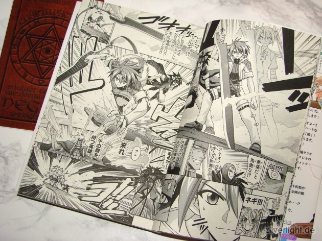 “Kleiner Auszug aus dem 27.Mangaband. Hier geht wieder Action ab. Wirklich schade, dass Negima! keine (qualitativ einigermaßen hochwertige) Longrun Serie gewidmet wurde, sondern nur die kurzen Staffeln in denen nicht wirklich gezeigt wird für was Negima! eigentlich steht,”