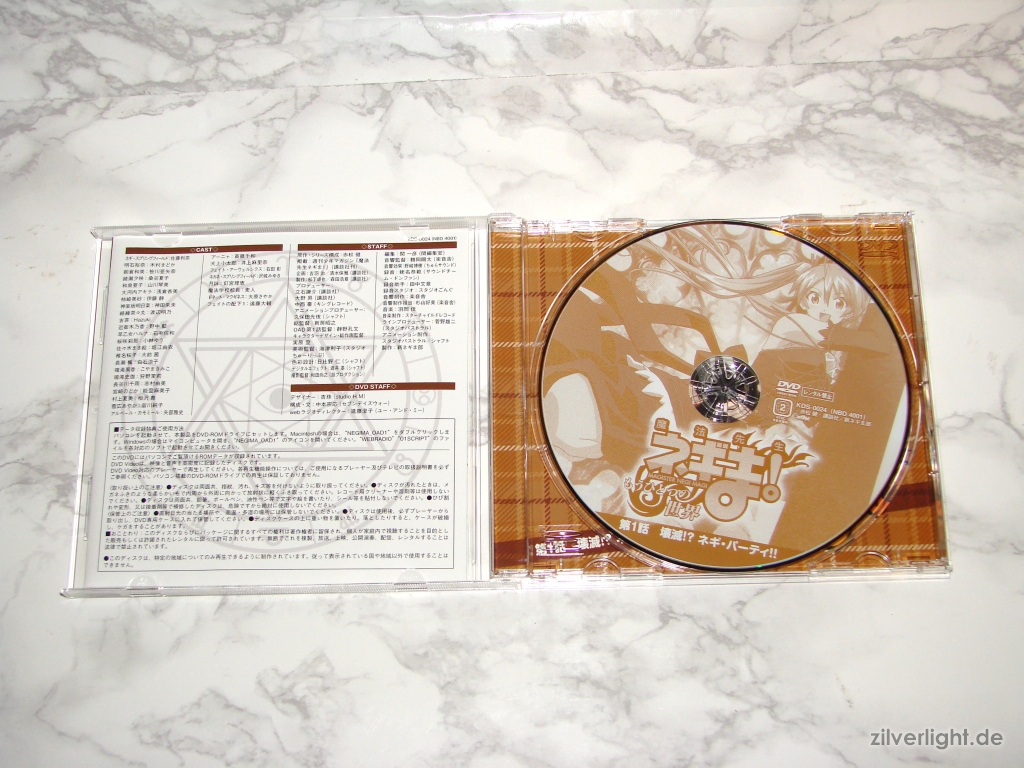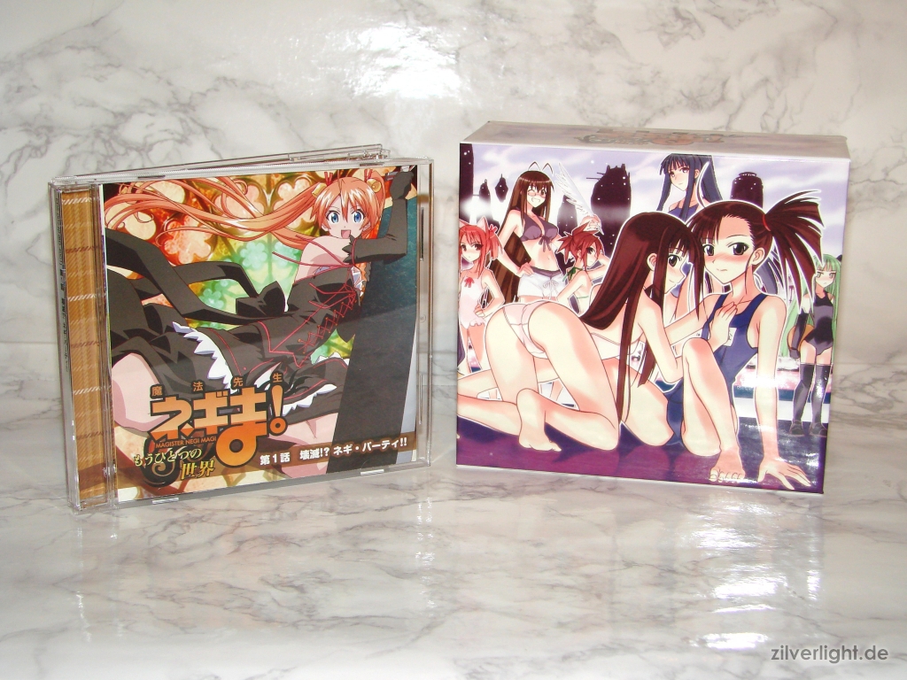 Der Schuber ist recht schick mit den shoujos aus Negima! verziert, ist stabil und fasst die ganze Mahou Sekai Story Arc OAD-DVDs inklusive Audio-CD.