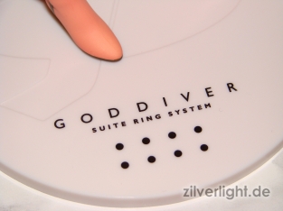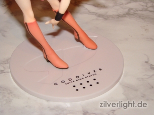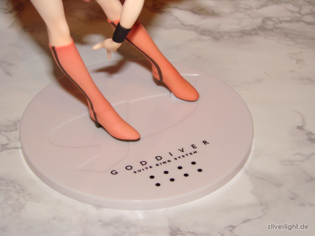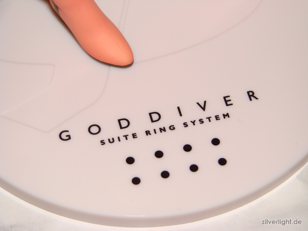 Die Base ist insgesamt wieder recht schlicht gehalten und besitzt neben einer Einprägung des Logos auch Text in schwarzer Schrift. Goddiver steht hierbei für die private Polizeiorganisation G.S.O. (Goddiver Security Organization) im Spiel welcher Baek angehört. Wie bereits erwähnt sehr schlicht gehalten, aber in gewisser Weise harmoniert das weiss der Base recht gut mit den Farben der Statue.