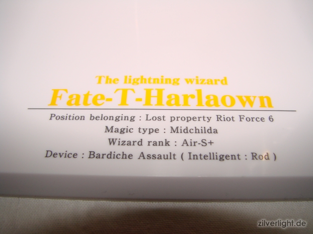 Zum Schluss natürlich wie immer die Base, welche wie bei allen Statuen der StrikerS-Reihe schlicht gehalten ist und immer jeweilige Informationen zum Charakter enthält.
